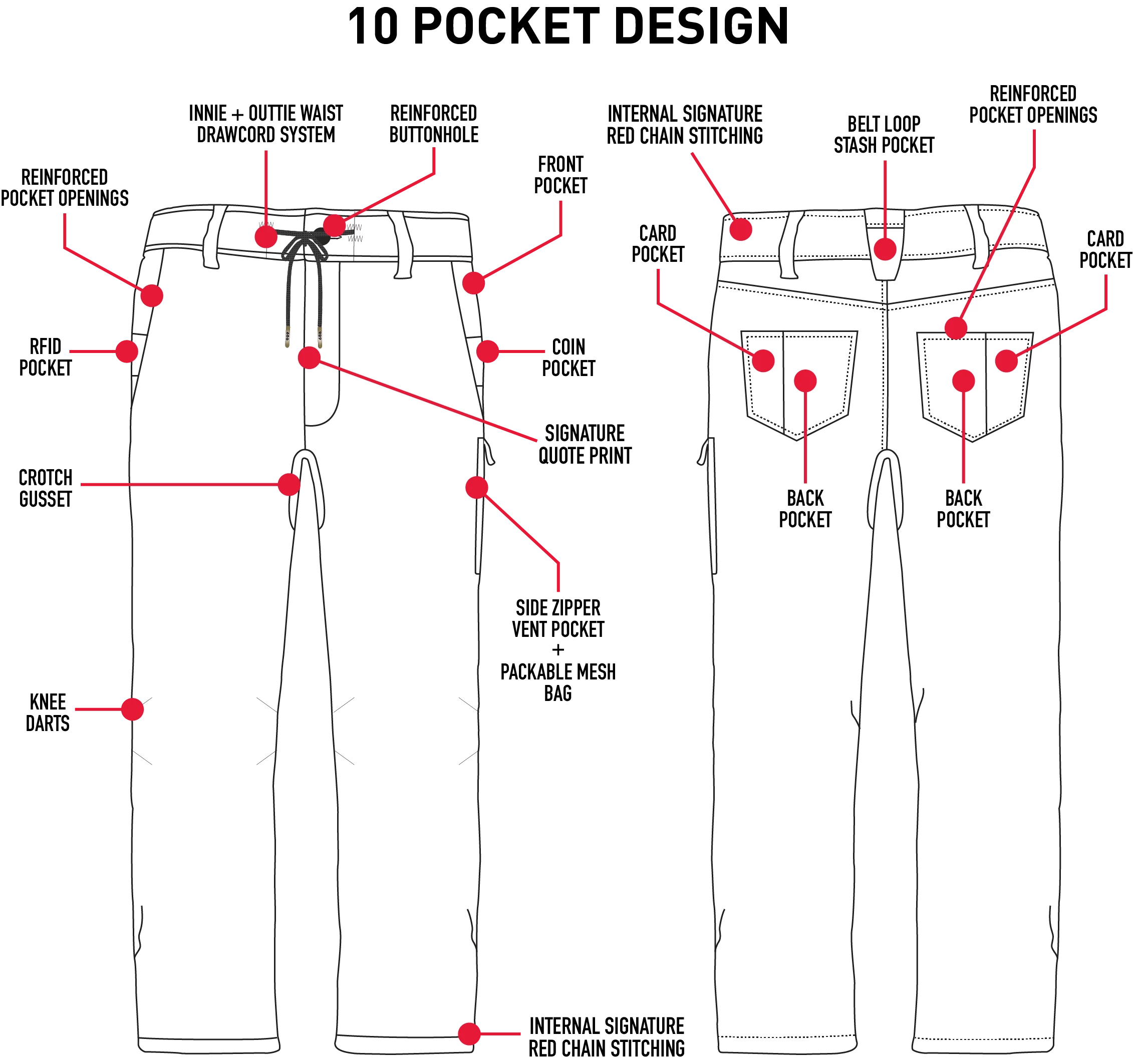 - Innie + Outie Waist Drawcord (Drawcord ends adjust inside or outside the waistband)