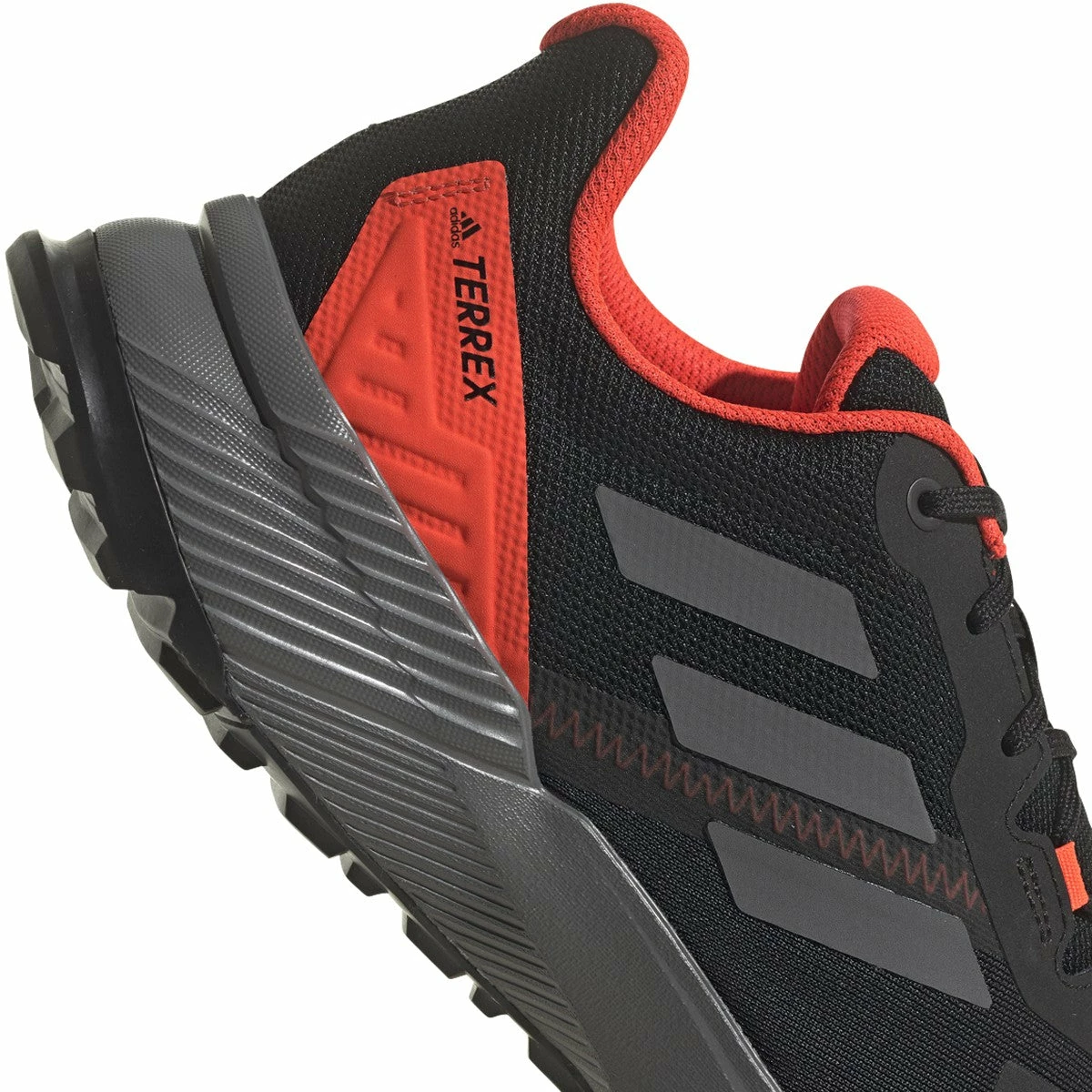 Extend your range in these adidas Terrex trail running shoes. Their cushioned midsole and pillow-like heel cushioning add up to all-day comfort step after step. A hybrid lug sole transitions easily between road and trail. Raised sidewalls complement the engineered mesh upper to add stability for confident footing, no matter where the trail takes you.