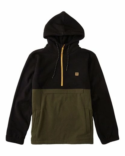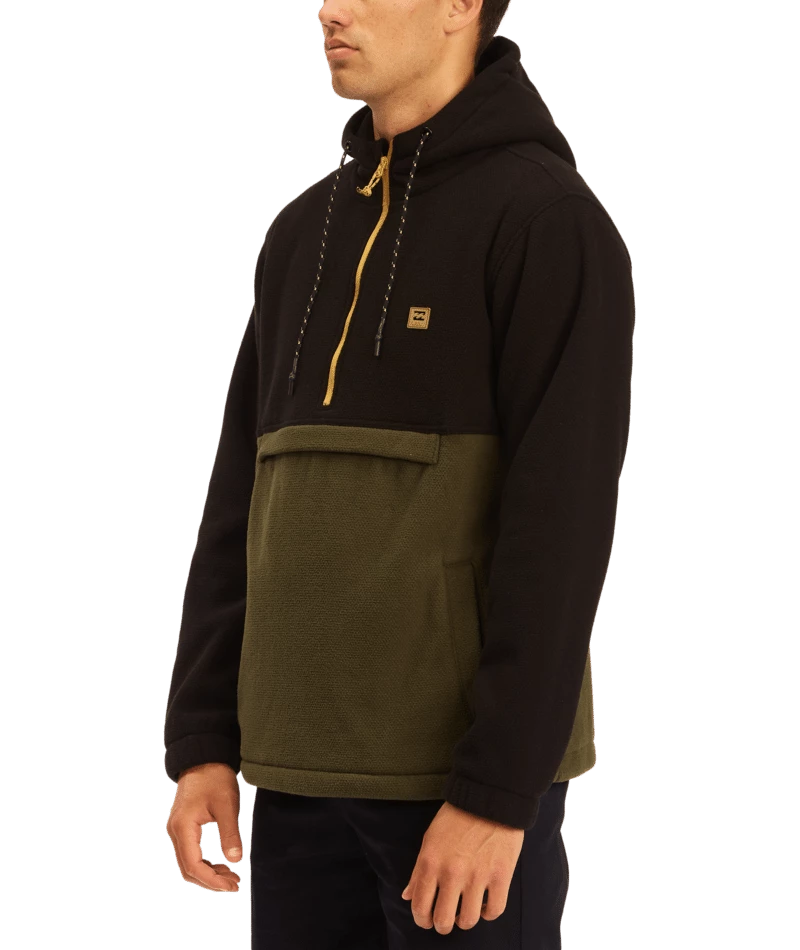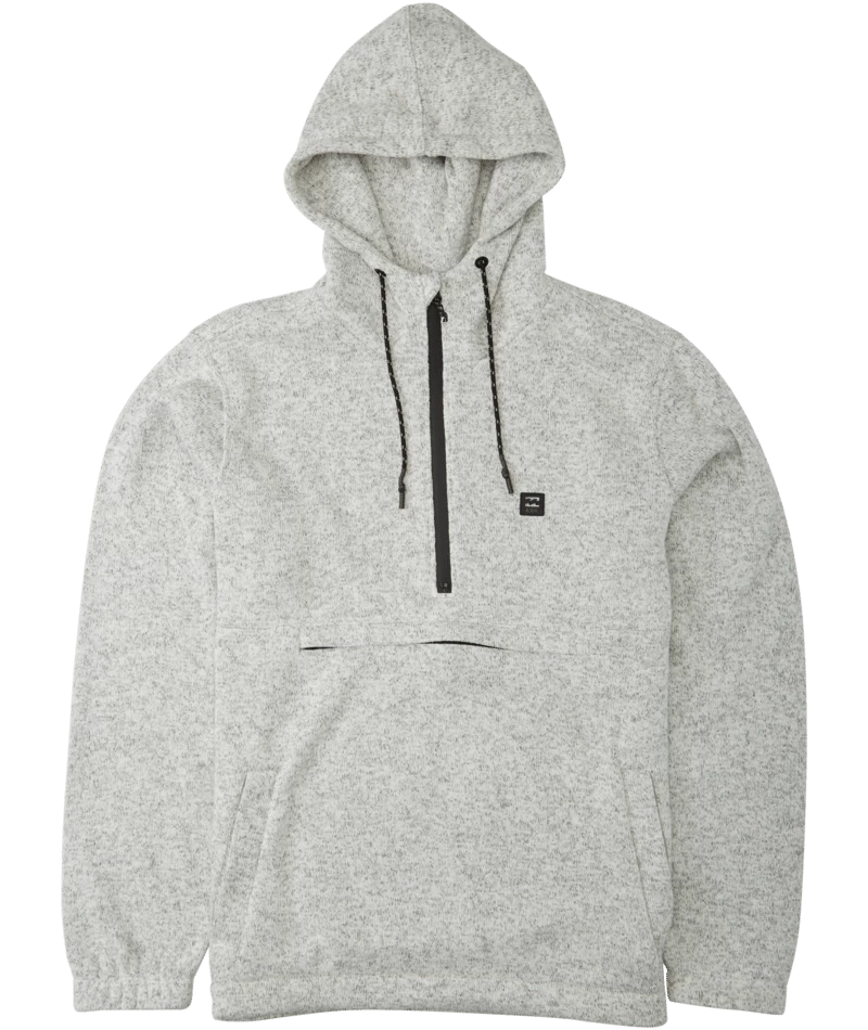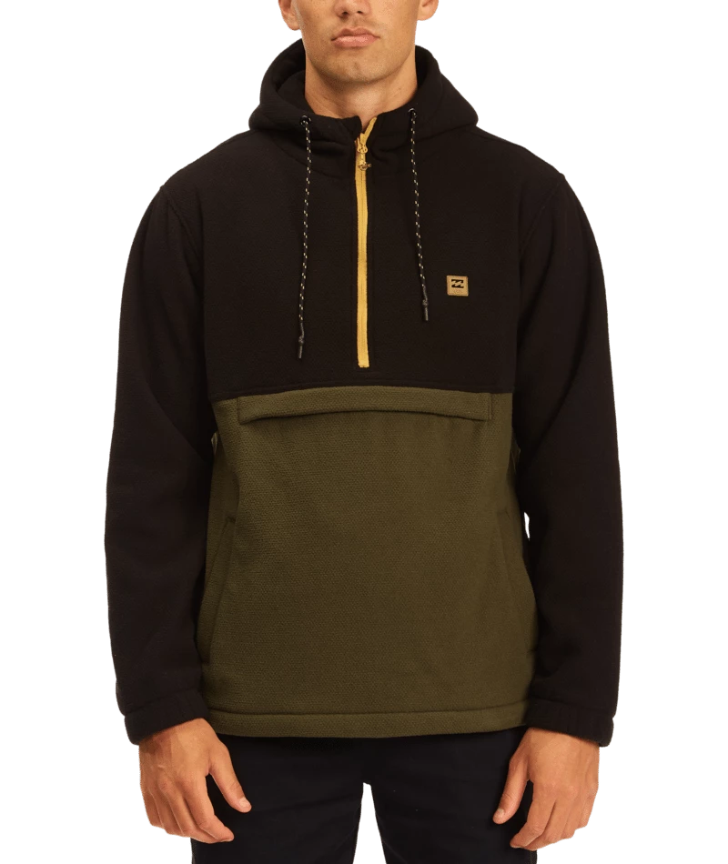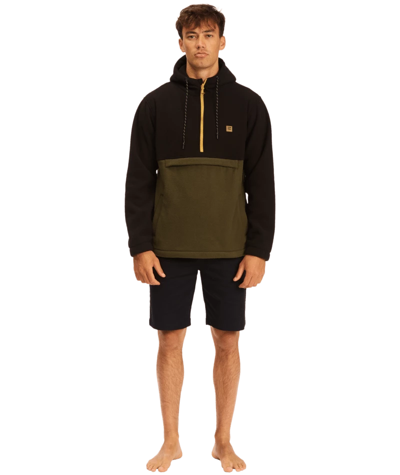 Clean styling and water-repelling tech come together on the Boundary pullover hoodie by Billabong. Heavy sweater fleece has a DWR coating for great water resistance. Part of the Adventure Division Collection, the half zip pullover hoodie has a high neck hood and an anorak style pocket.