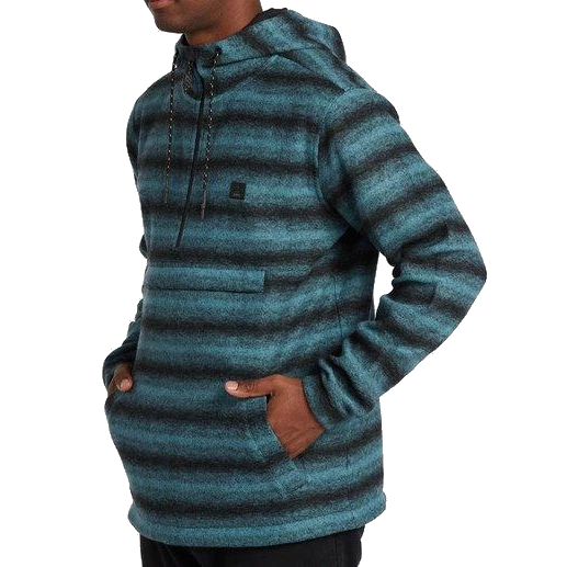 Poncho-inspired lines and tactical polar fleece come together in this surf trip essential hoodie. The striped polar fleece has a DWR coating for great water resistance. Part of the Adventure Division Collection, the half zip pullover hoodie has a high neck hood and an anorak style pocket.