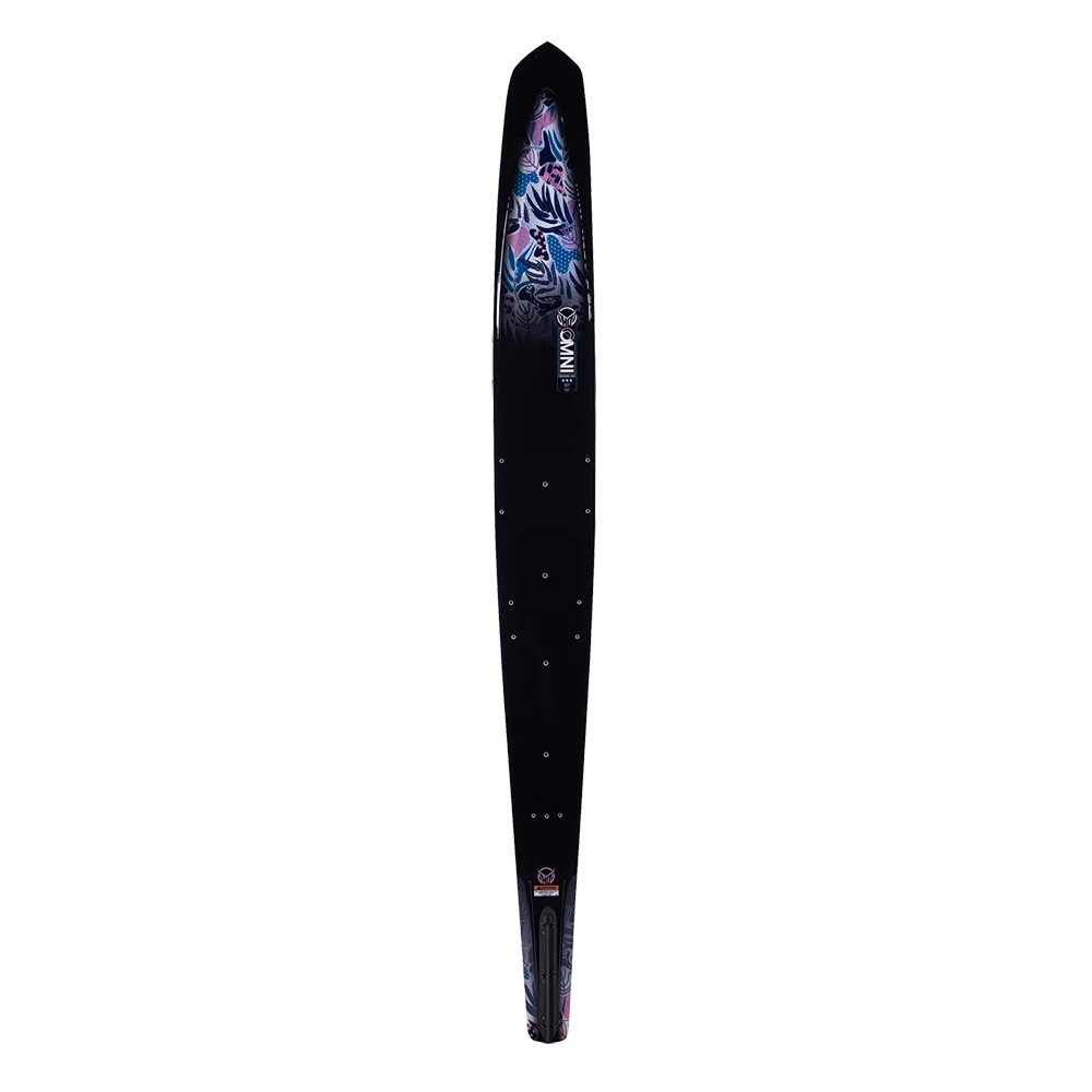 The OMNI waterski is optimized for the skier who needs one ski to do everything. Great behind virtually any watercraft on nearly any waterway, it’s wide platform provides easy deep-water starts, smooth-as-butter turns, stable wake crossings and endless fun on the water! Master your skills by progressing quickly with a ski that does it all! Shape: The Omni was designed with a Hybrid Waist Width, halfway between those typically found in traditional skis and those in wideride skis. This provides for smooth instinctive turns at a wide range of speeds. The Omni’s Continuous Rockerline executes intuitive turns with no paralleling while the Clean Edge Technology tail reduces drag 50% by allowing water to release cleanly off the bottom of the ski. This differs from conventional edges where water wraps around the bevel, up the sidewall and releases off the upper edge creating suction. The Clean Edge bevel-less tail offered in the Omni designs, Clean Edge 3.0, produces more acceleration with less skier input. In addition, we’ve enhanced stability by maintaining more bevel between the rear foot and fin. The result is a fast moving highly efficient ski with the handling required for tight line turns. Construction: A traditional Fiberglass Polyurethane core creates a stable and damp feel, extremely forgiving in variable water chop and less than ideal conditions. The Omni employs our Switchblade Fin System, with fin settings built into the ski permitting simple fin swapping with no guesswork. The Omni is equipped with the Asher Balance Fin, shaped by Champion waters skier Will Asher. It’s reduced fin length provides quick turn rotation combined with a new distribution of surface area for great cross course direction.