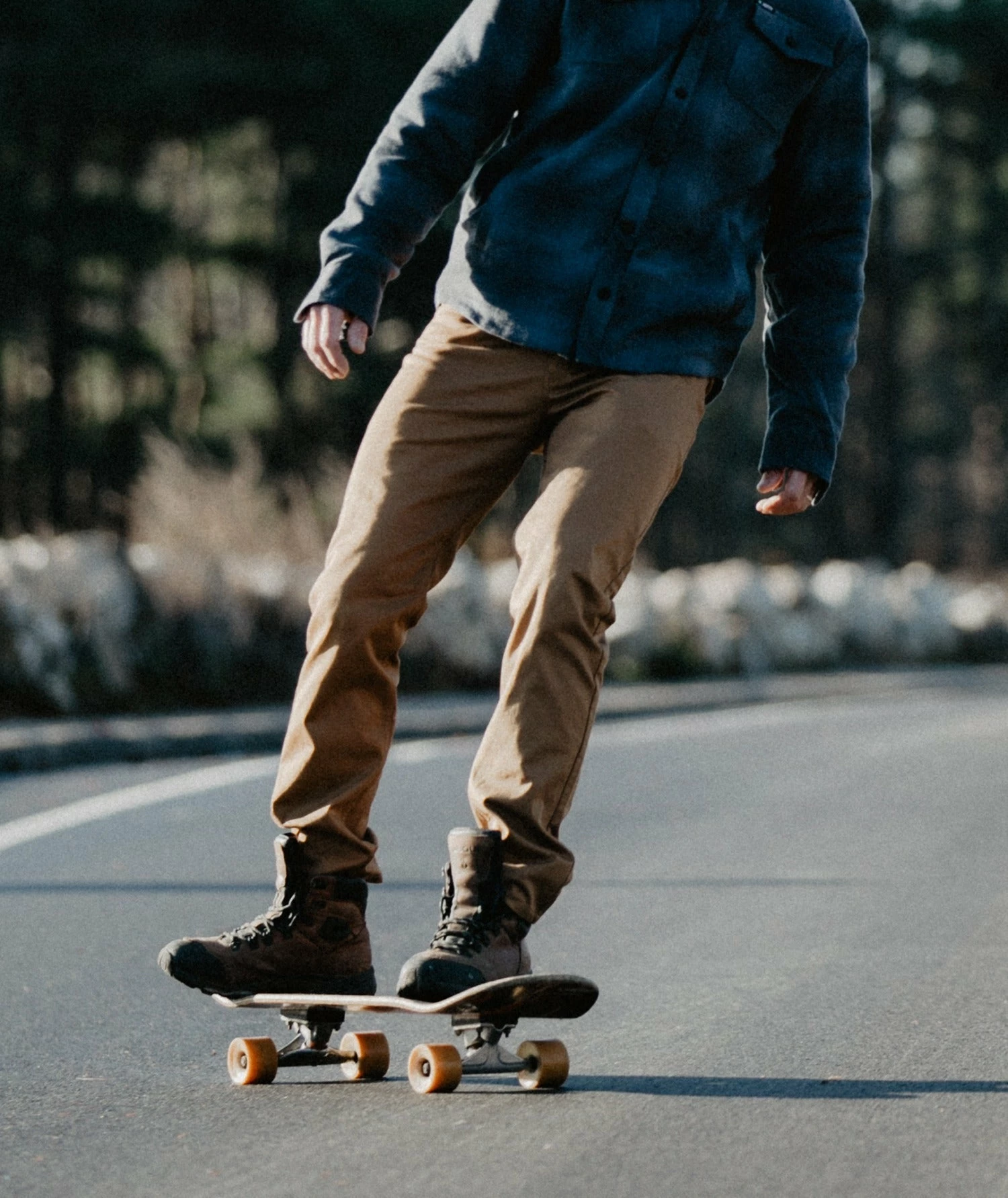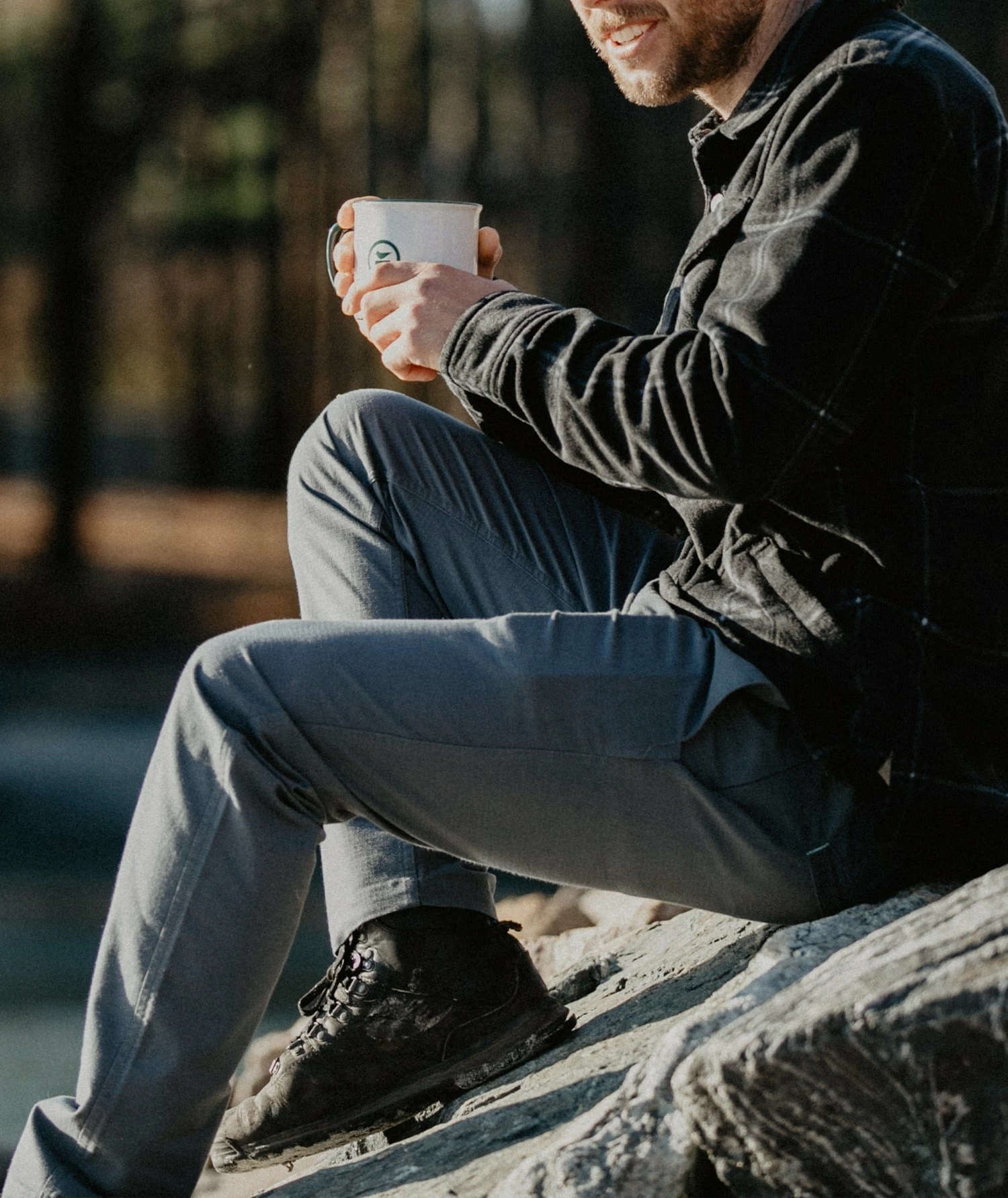 The Bedrock Pant feature denim-style pockets and hardware, rivets at all stress-joints, back waist leather label, heavy-duty railroad button, fly closure, and custom labeling.