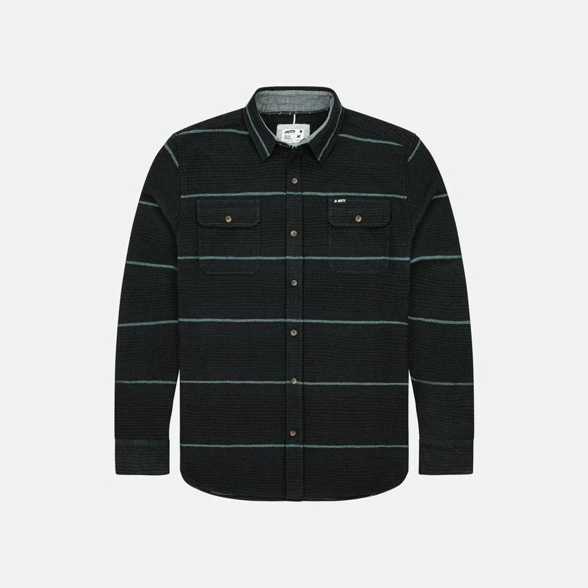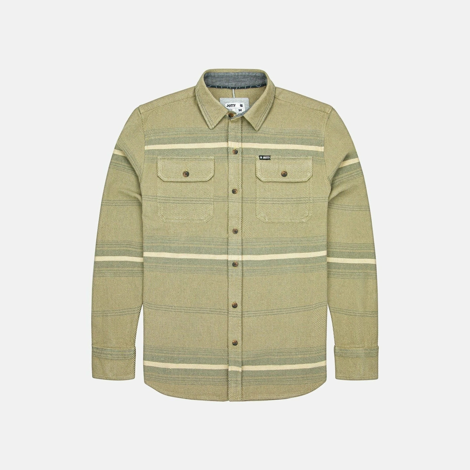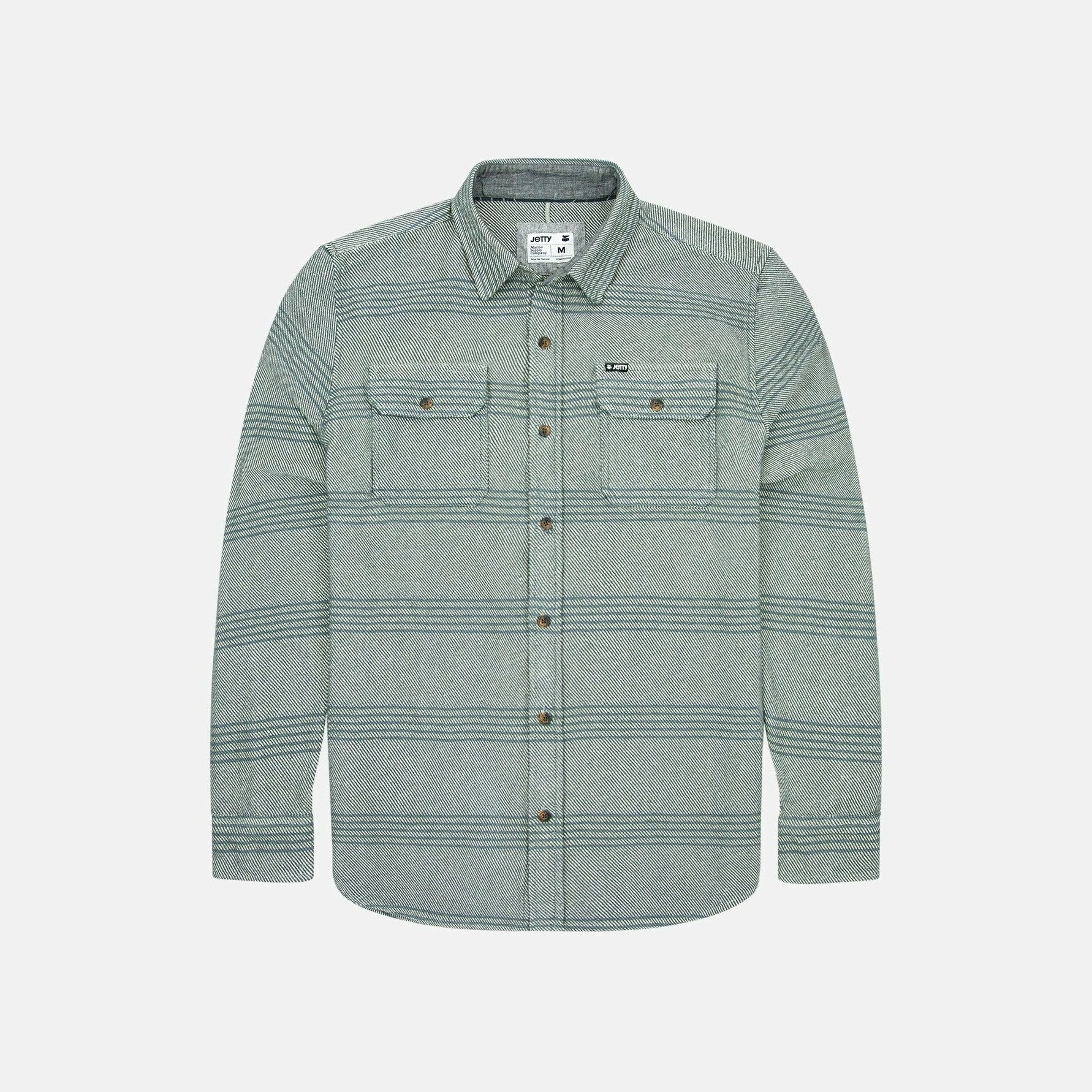 Made from super heavy-weight flannel, the Horizon features laser engraved buttons, large double chest pockets with Otis Pillar flaps, scallop side-seams with contrast fabric detail, custom labeling at neck, inner-placket, and chest pocket. Designed at Jetty HQ.