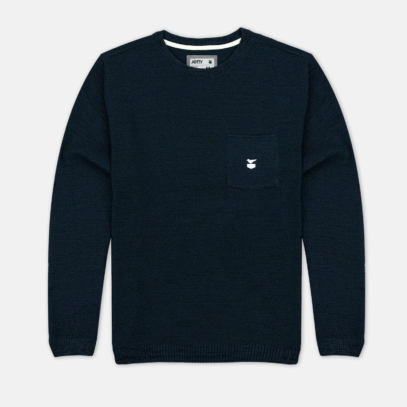 Featuring a waffled knit marl yarn, the Brine features a rolled-edge chest pocket, embroidered logo, light ribbing at cuff and waist hem, and custom labeling. Available in unique colorways designed at JettyHQ.