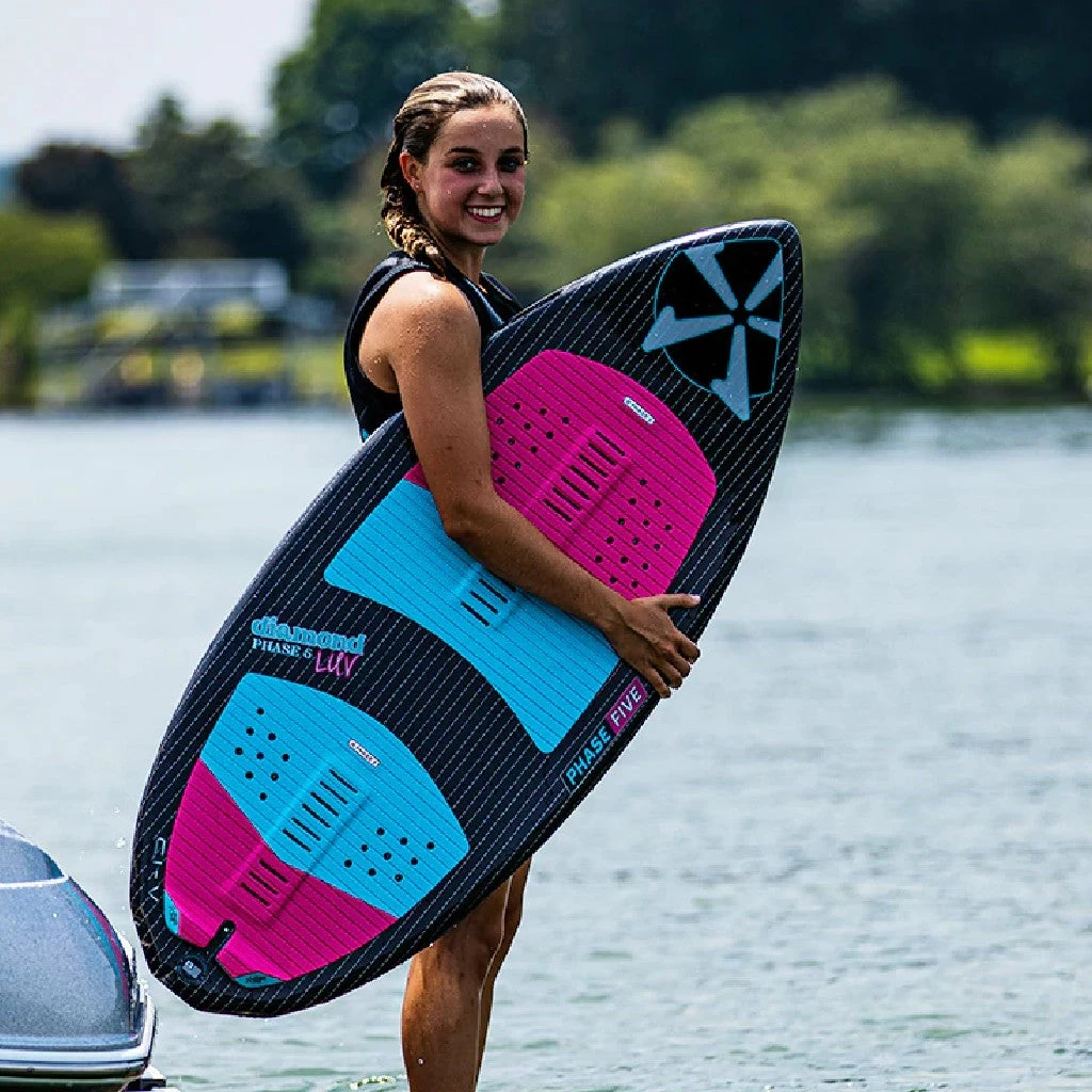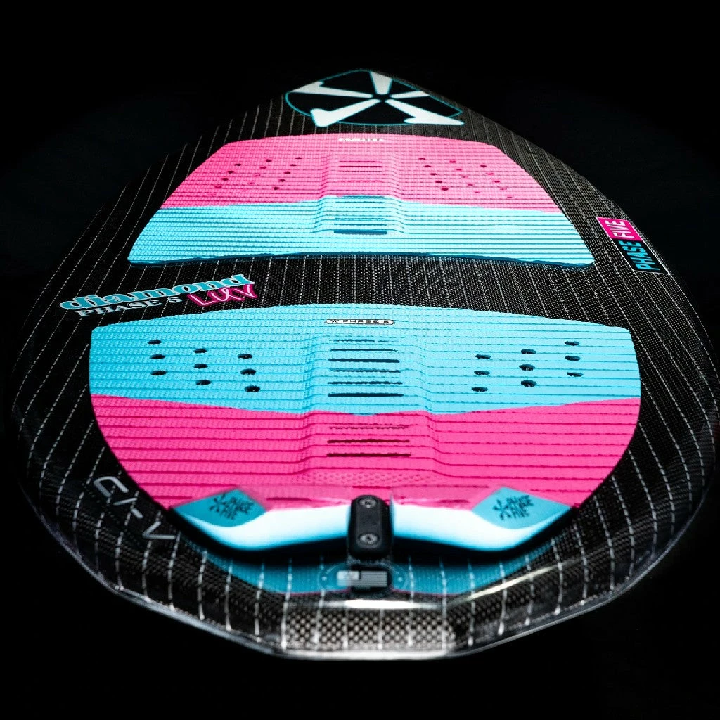 The Diamond Luv is the high-end answer to the ladies out there pushing their limits. The Luv sports all the same features as our Diamond in a scaled down version. The full tail gives you back foot control without compromising speed. It features a single 1” skim style fin that will give the Luv a true skim style feel. Built with our eye-catching Carbon Innegra Vertical glass, it catches a lot of attention. The Luv has become the go to board for riders of all levels. This is tough LUV!
