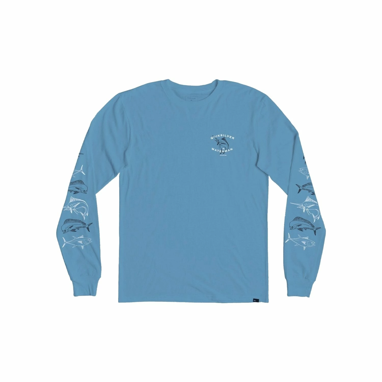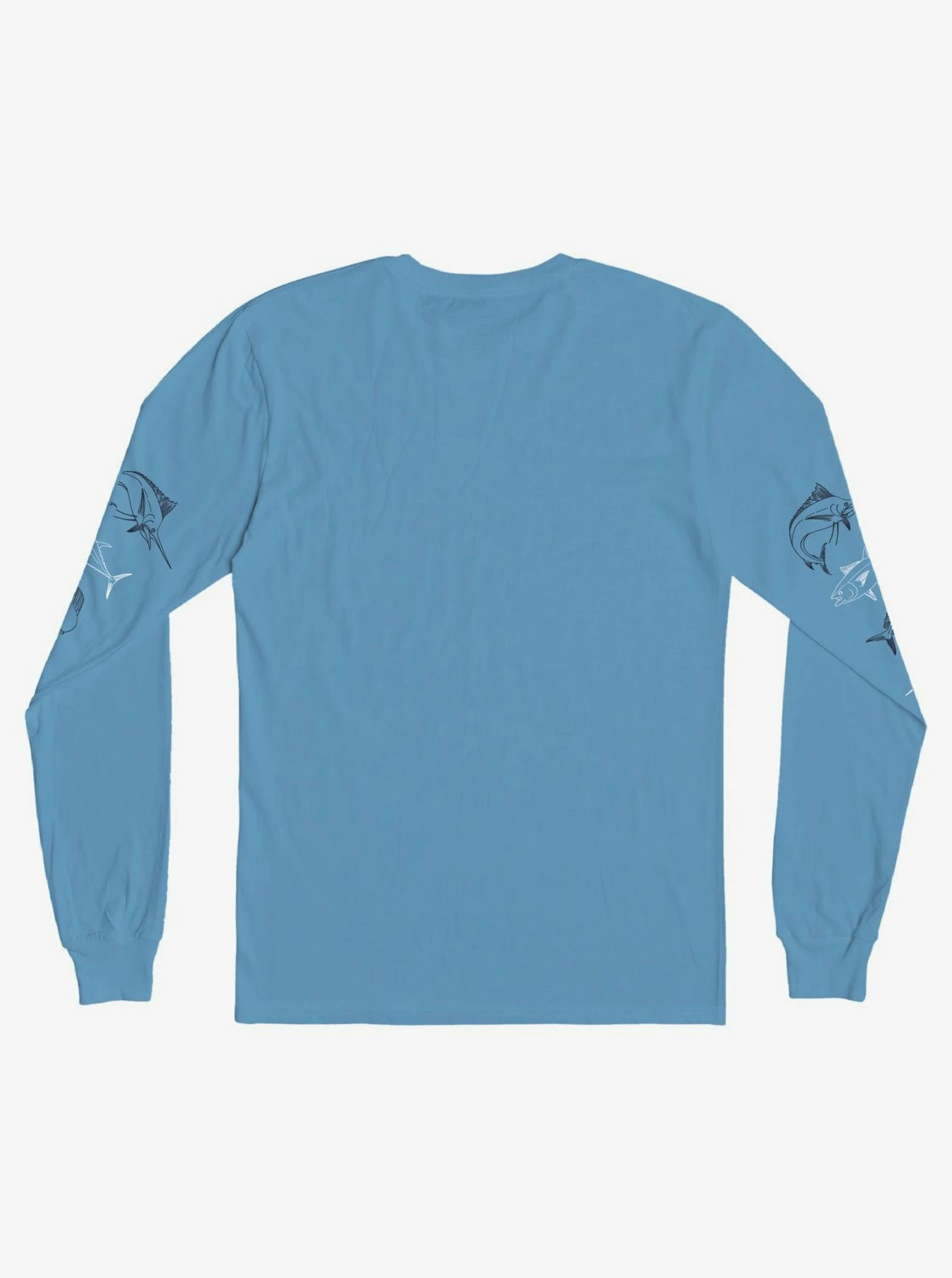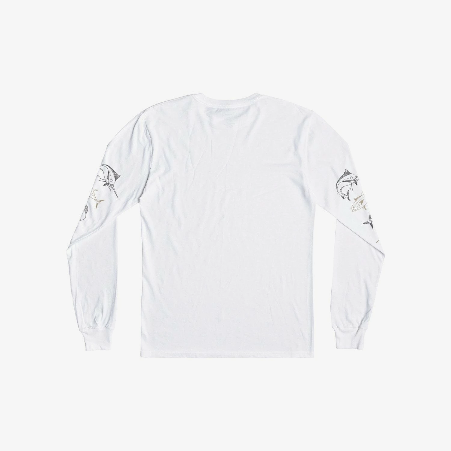 A marlin and friends soft hand-feel print is featured on the chest and arms of this long sleeve t-shirt. The cotton jersey fabric has a suede-feel for a soft, comfortable fit.