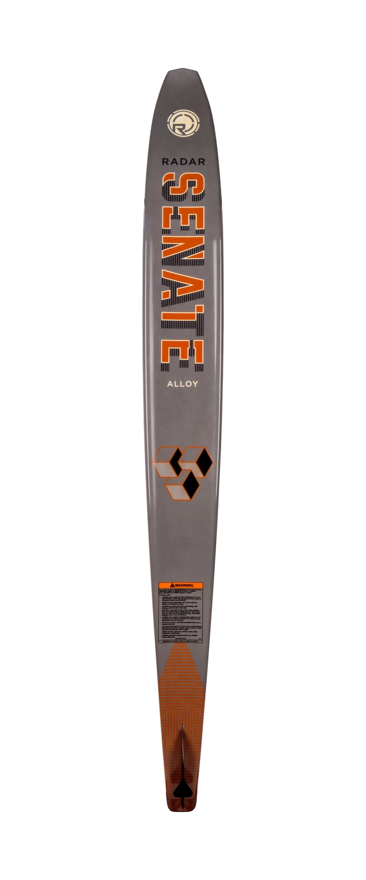 The Senate’s ability to carry speed is unmatched in the industry. This speed allows the skier to maintain width on the boat ultimately giving a sense of freedom sought after by those that ski in the course as well as those ripping open water turns. By taking our Vapor shape and adding two tenths of an inch in extra width we have created a stable riding platform. This platform creates the balance needed for a skier to feel at home, while the profile of the ski allows the skier to feel the speed and angle sought after at any level.