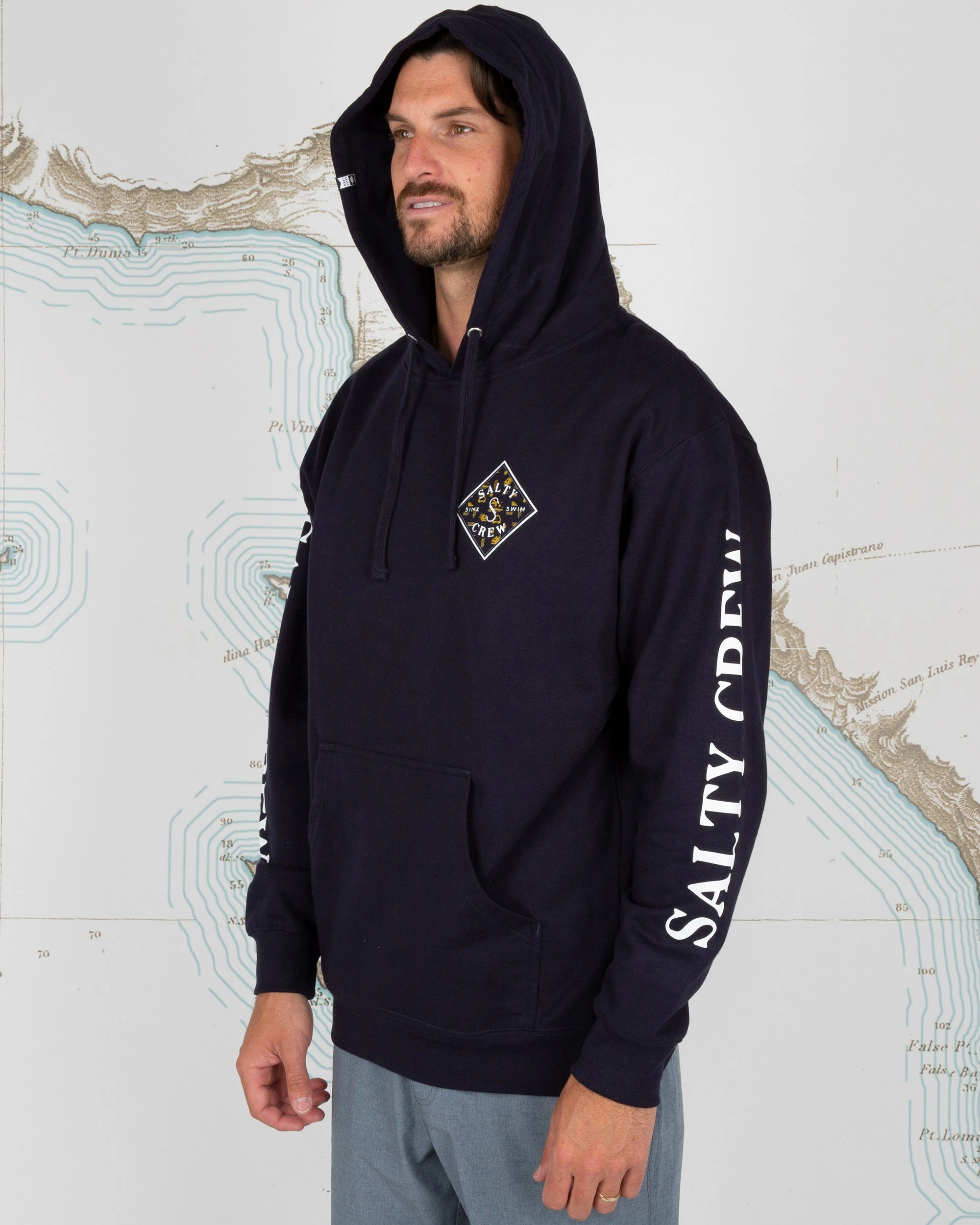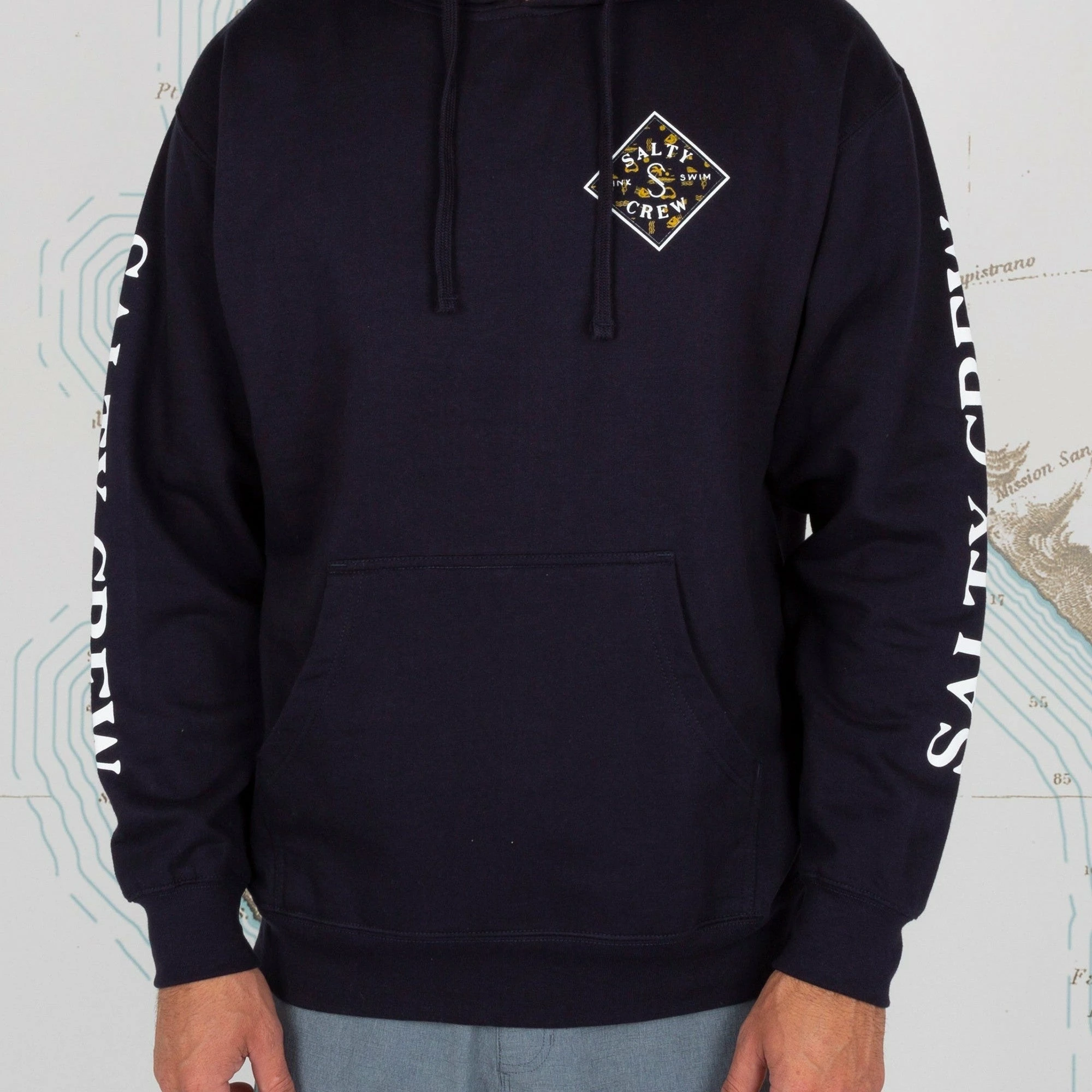 Kangaroo pocket with drawcord hood.